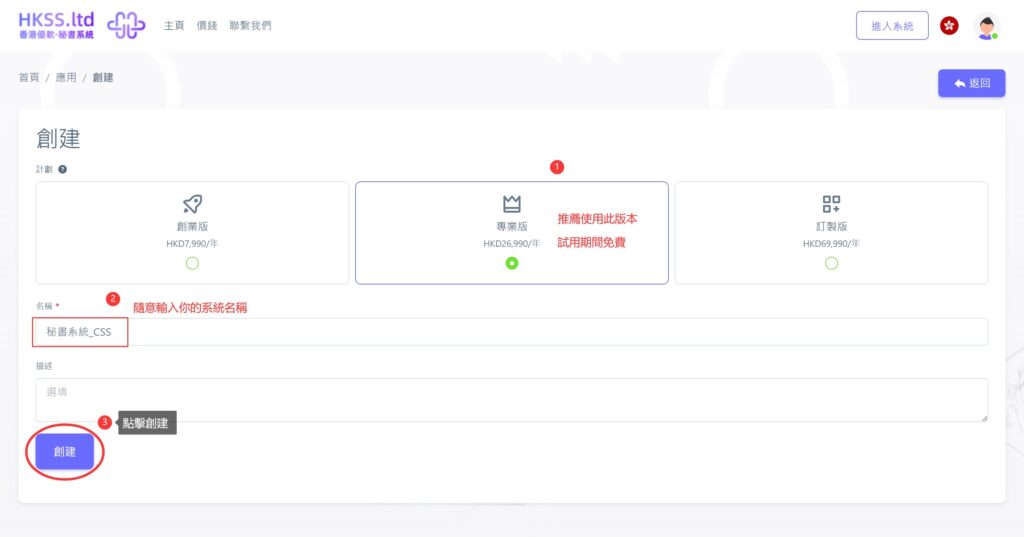 - 在瀏覽器登入我們的網站(https://www.hkss.ltd/);